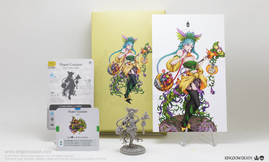 This Halloween survivor wears a Flower Knight costume while trick or treating, and will not 'leaf' without some sweet treats. This seasonal figure includes a seed pattern that survivors can craft to join in celebrating the inscrutable guardian of the wood.