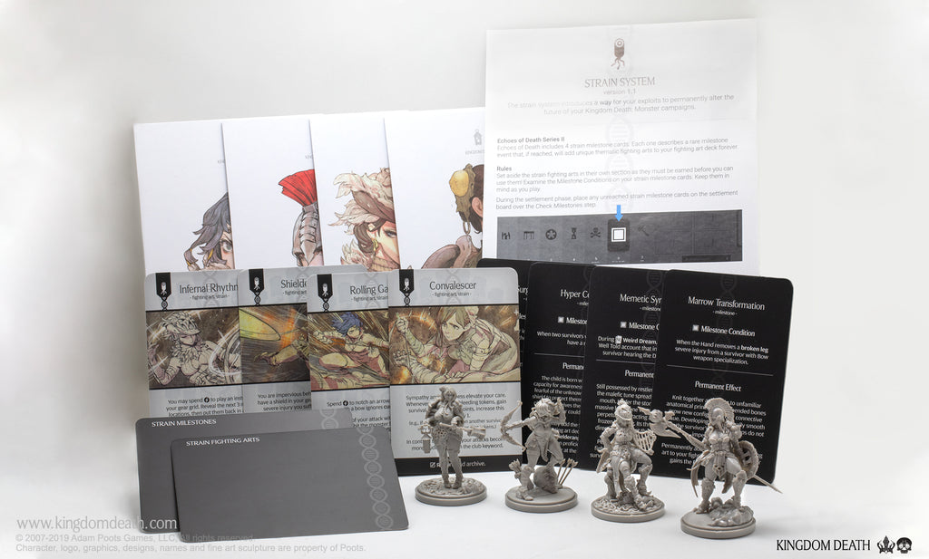 These sets includes prototypes of Strain System mechanics. Add your Strain Cards to your game, if you reach their unique milestone conditions, your gameplay changes forever by adding new fighting arts to your game.