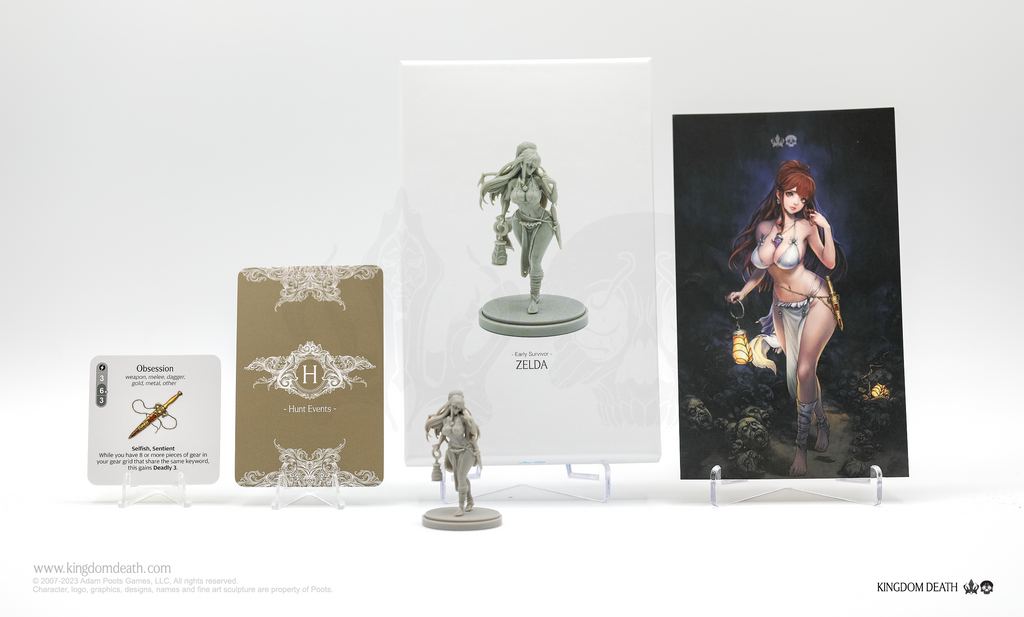 The Early Survivor - Zelda is packaged in an illustrated box that includes: