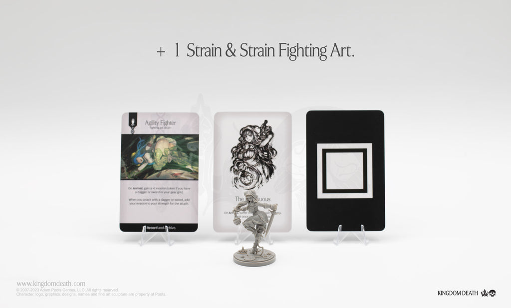 A celebration of survivors from Kingdom Death: Monster. Featuring four updated sculpts of strangers struggling to survive the darkness. This set includes a range of rules and tools representing the ways survivors might harness the world around them for their own gain. From indomitable resources to carve from the toughest monsters, to seed patterns of inspired design, to the knowledges of the arc survivors, this box celebrates all the advantages to be found in this meager existence.