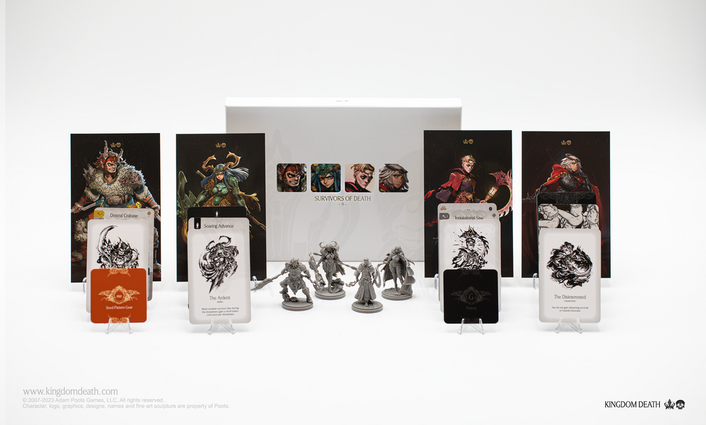 +4 population! A brand new crop of survivor miniatures perfect for your Monster game! Featuring four sculpts of strangers struggling to survive the darkness. This set includes a range of rules and tools representing the ways survivors might harness the world around them for their own gain. From indomitable resources to carve from the toughest monsters, to seed patterns of inspired design, to the knowledges of the arc survivors, this box celebrates all the advantages to be found in this meager existence.