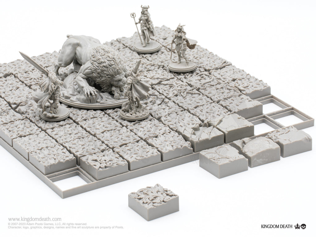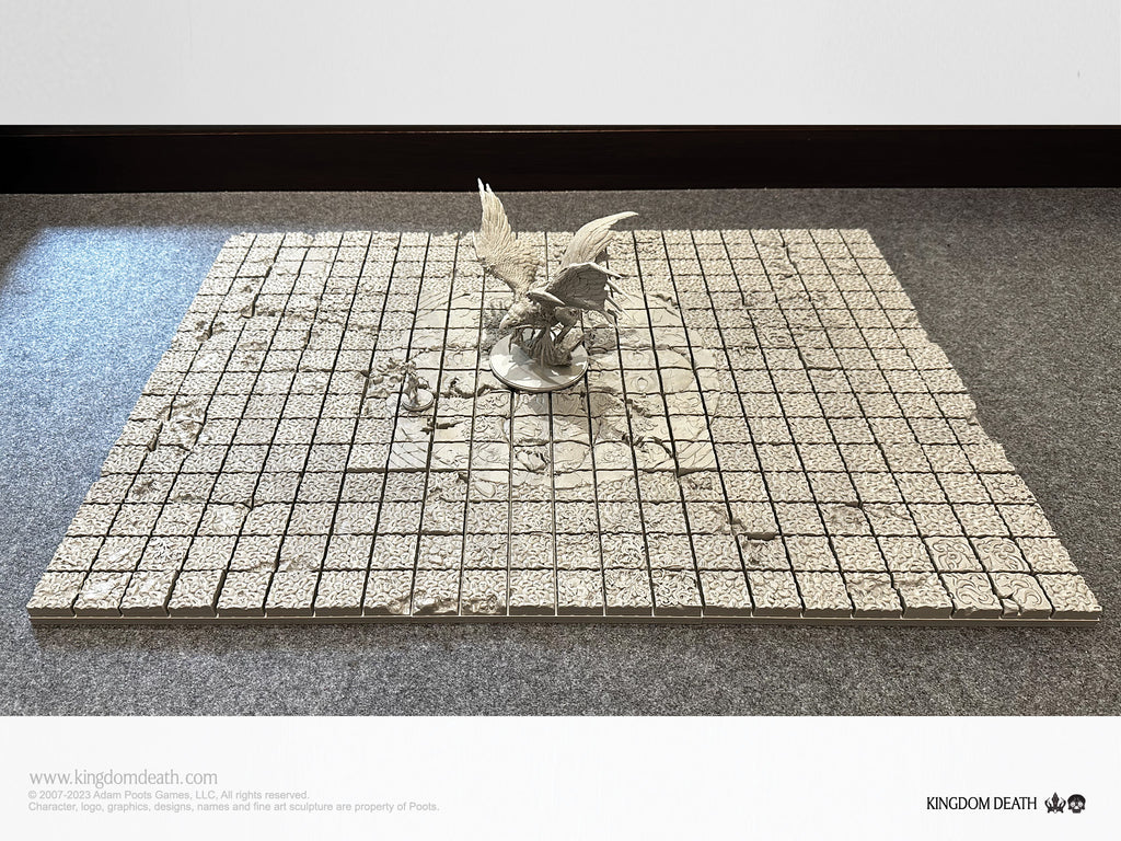 The ultimate showdown board is a feast of environmental nightmares, extruding the hidden elements of the illustrated board. Immense consideration was also spent to ensure that your valued models stand fully supported on each and every board space.