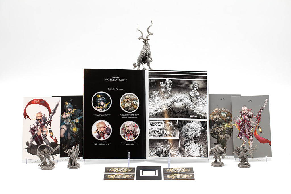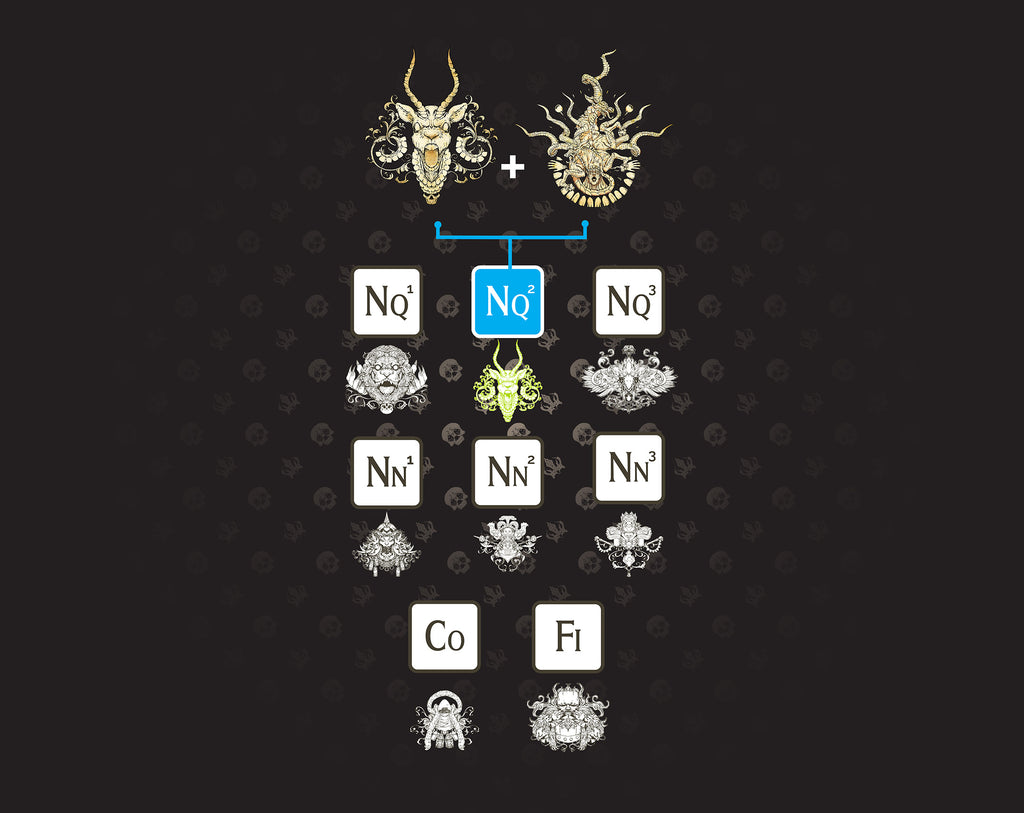 A masterfully sculpted, loathsome Screaming Nukealope figure reveals the Screaming Antelopre's mutation. Accompanied by new gameplay cards that transform its behavior.