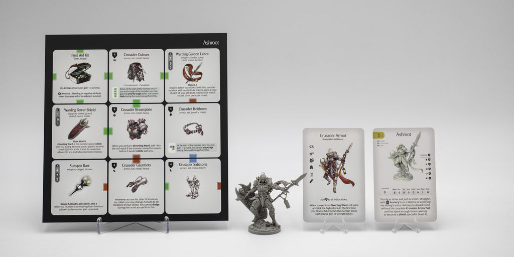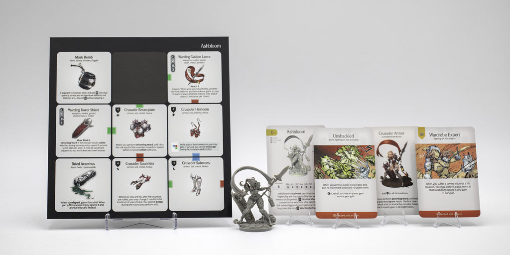 Each member of Team Gnostin comes with a ready-to-play gear grid and vignette card to guide you in creating their survivor.
