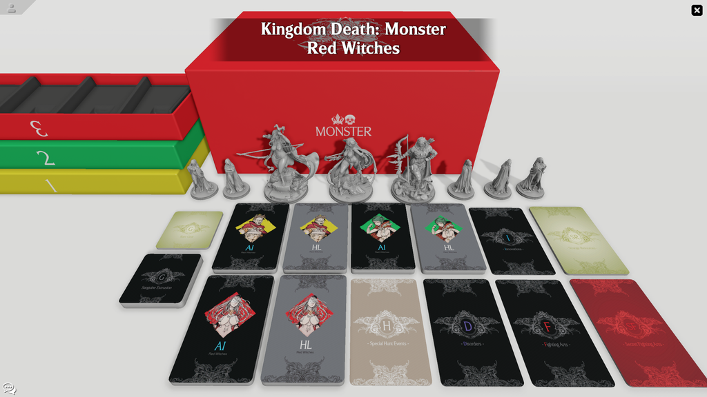 The Red Witches expansion has been lovingly recreated and is ready for play in the Dwelling. Each of the included digital models feature hand made topology (no automated low poly creation here!) and textures to simulate that authentic Kingdom Death hard plastic look and feel. Each an efficient mastering in its own right, with dynamic LOD so they look amazing from any zoom level.