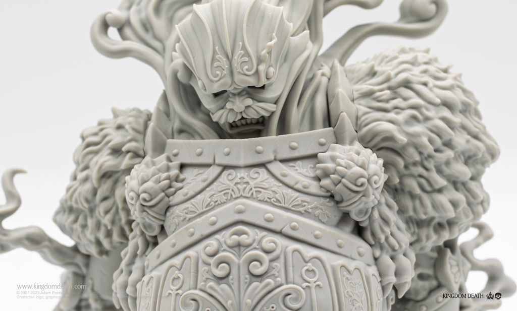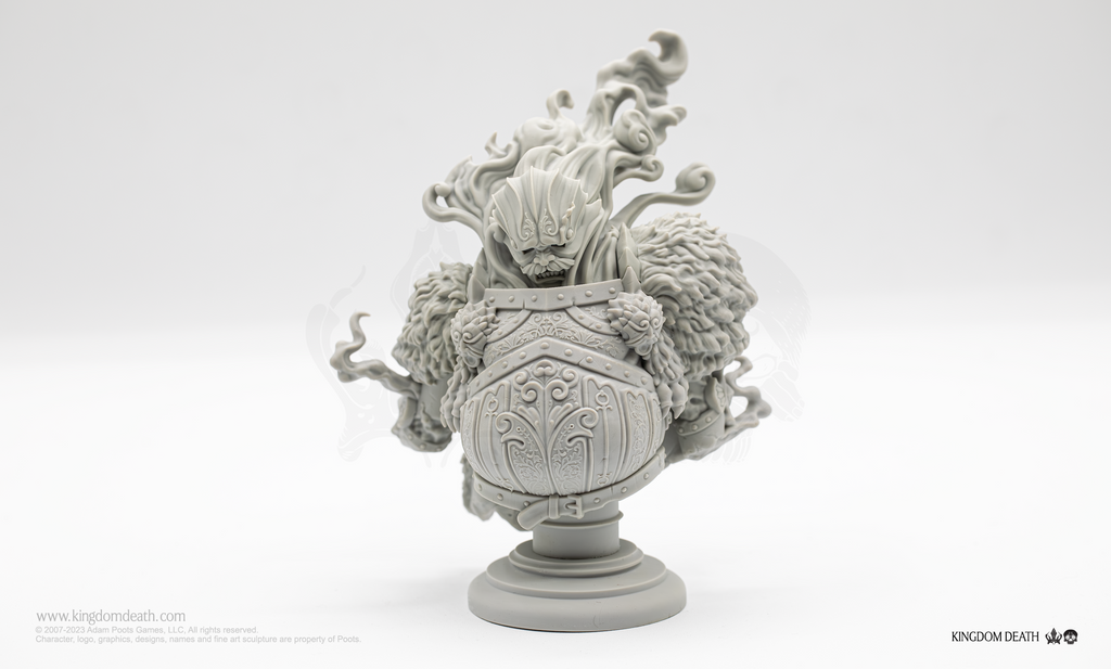 The ultimate Gold Smoke Knight captured in its smoldering resplendence, a huge bust dripping with detail. Magnifying the dynamic details of the original sculpt and adapting it for the format. Perfect for painting or collecting.