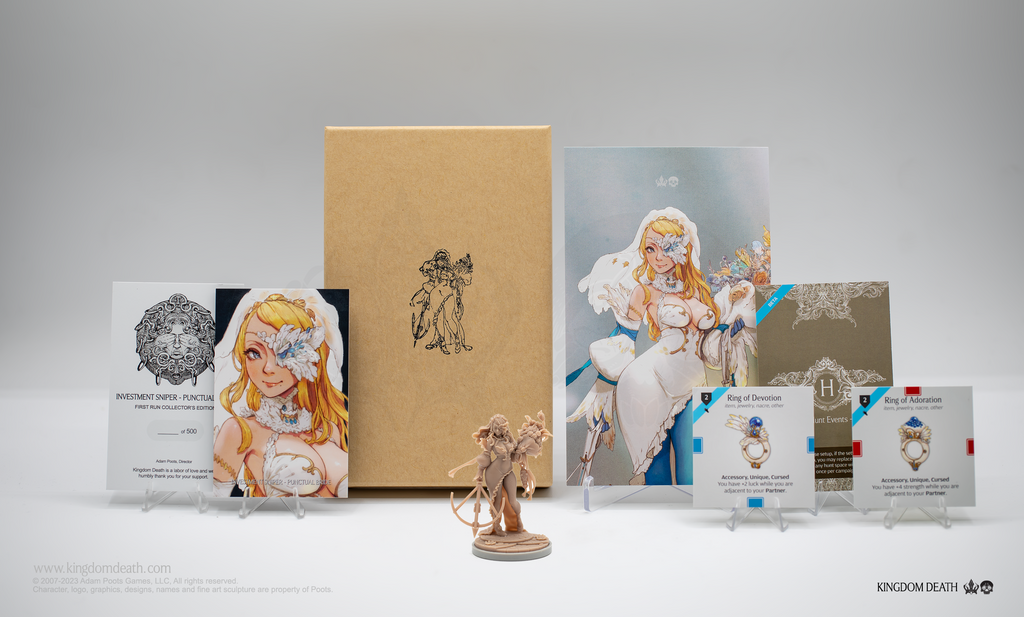Inspired by two separate encounters with the amazing fans of Kingdom Death. The Investment Sniper returns after an encounter with a terrific Investment Sniper cosplay at Gen Con. In another astonishing event, a pair of fans celebrated their partnership with a surprise, custom made hunt event proposal during their hunt phase.