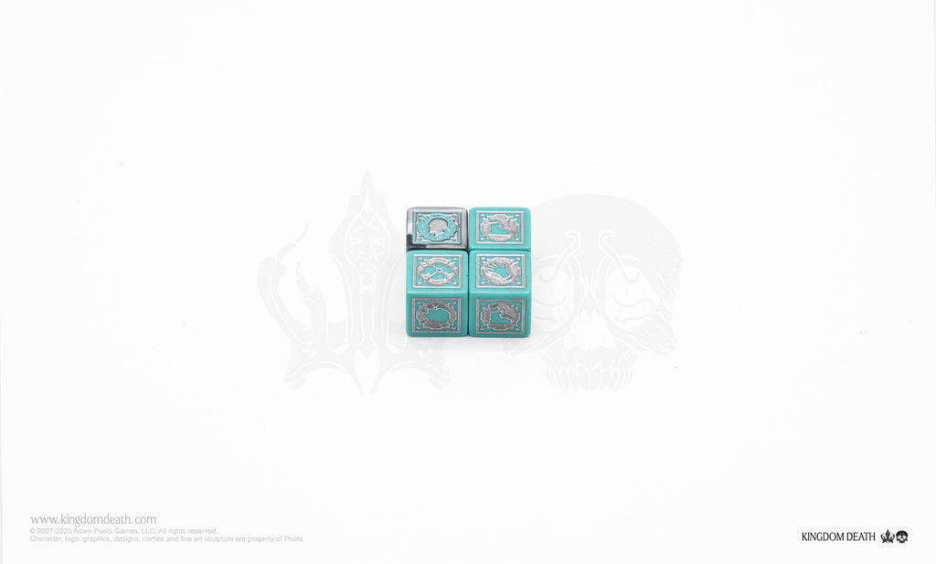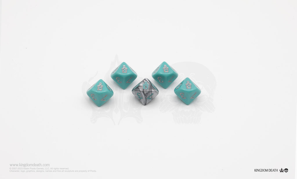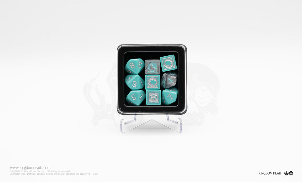 A set of 9 custom Kingdom Death: Monster dice. presented in a Squires flavored colorway for your next Monster or Squires of the Citadel campaign. Inspired by the colors illustrating the tender moment between the squires and their restless guardian.