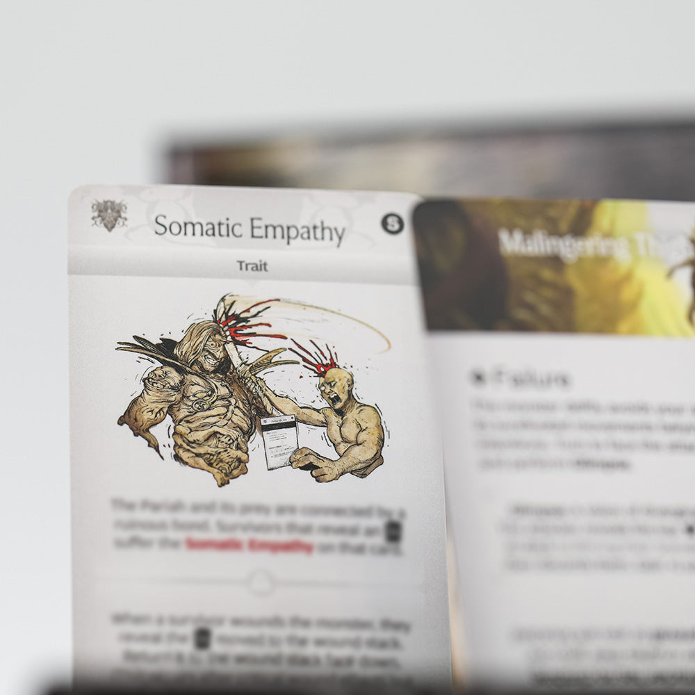 A showdown with the sadistic Pariah is twice as dangerous. The indignant monster attacks with its nimble limbs. Bound by the monster's sympathetic blood magic, the survivors also suffer when they harm the monster.