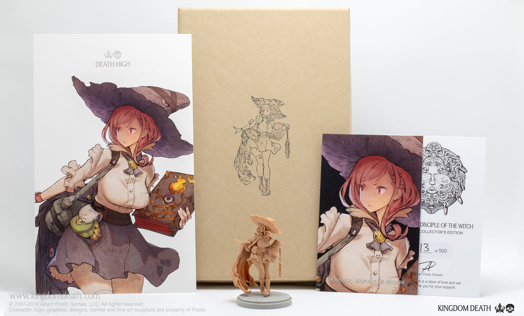 The Death High Disciple of the Witch is packaged in a hand-stamped kraft box and includes: